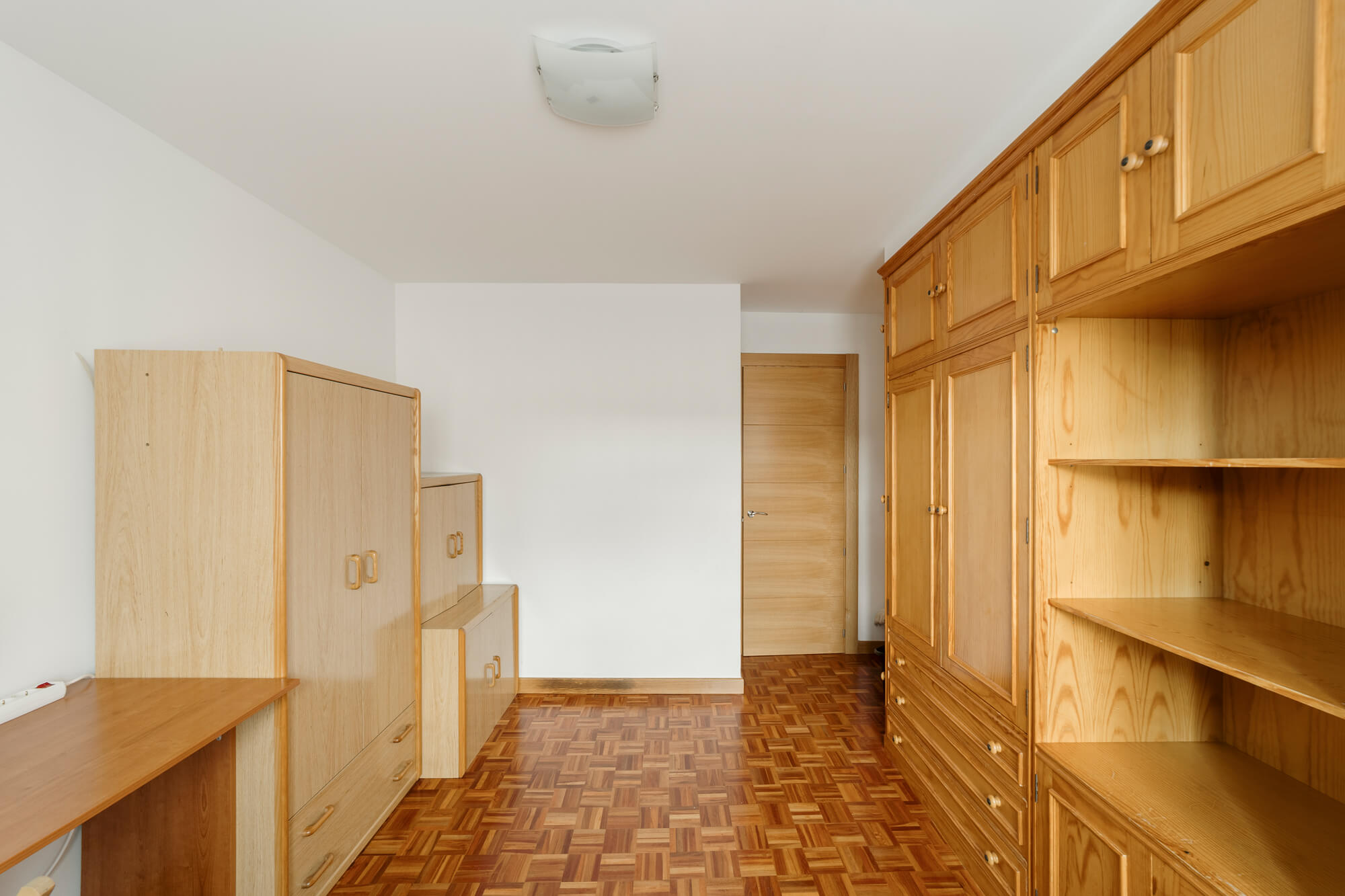 La vivienda consta de un hall de entrada, un salón amueblado, un dormitorio principal con armario empotrado, un baño completo recién reformado, dos dormitorios con espacios de almacenaje, un amplio despacho y una equipada cocina.