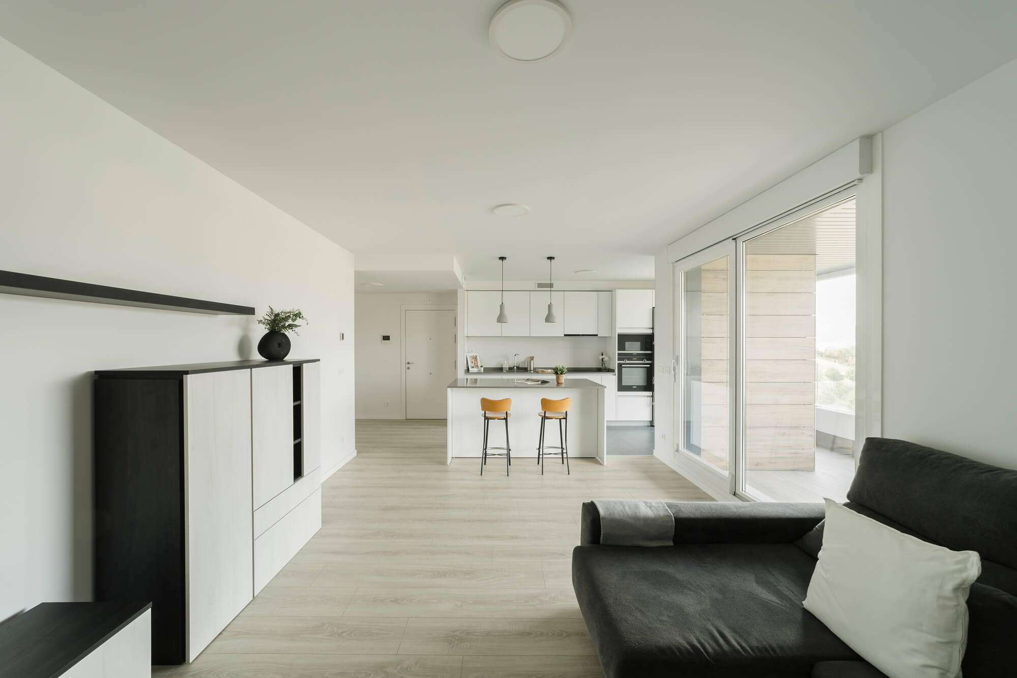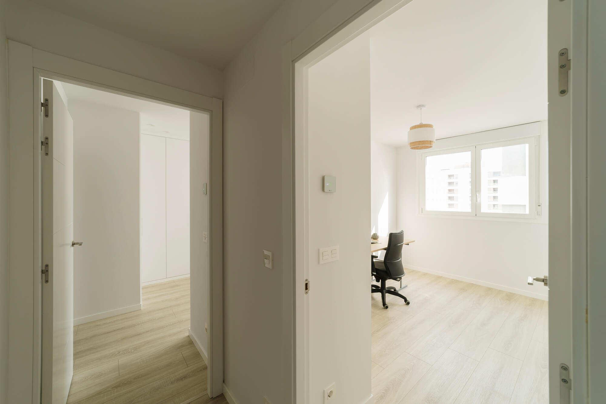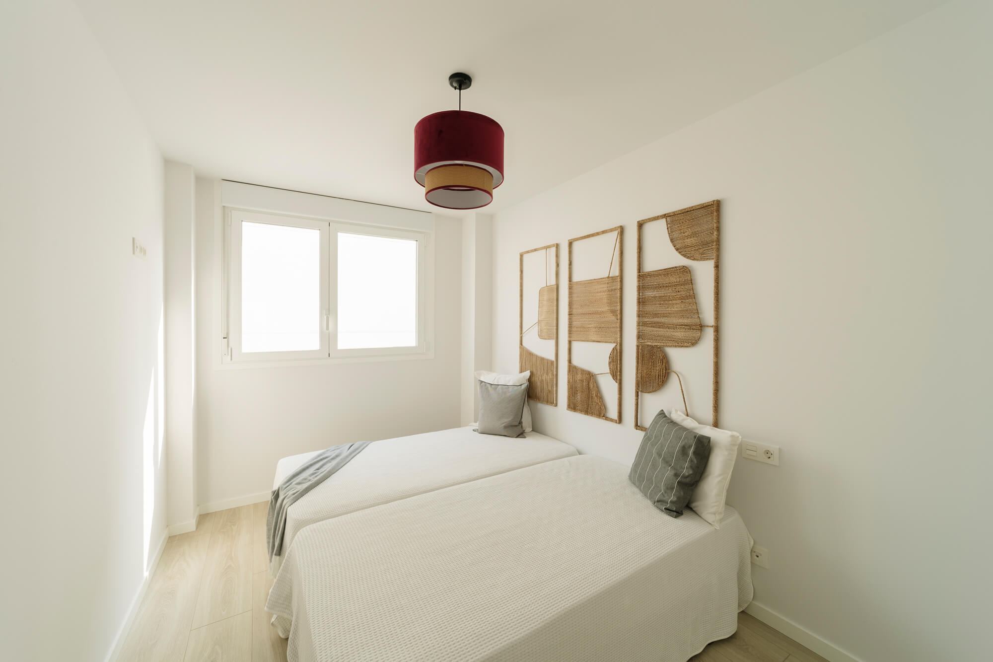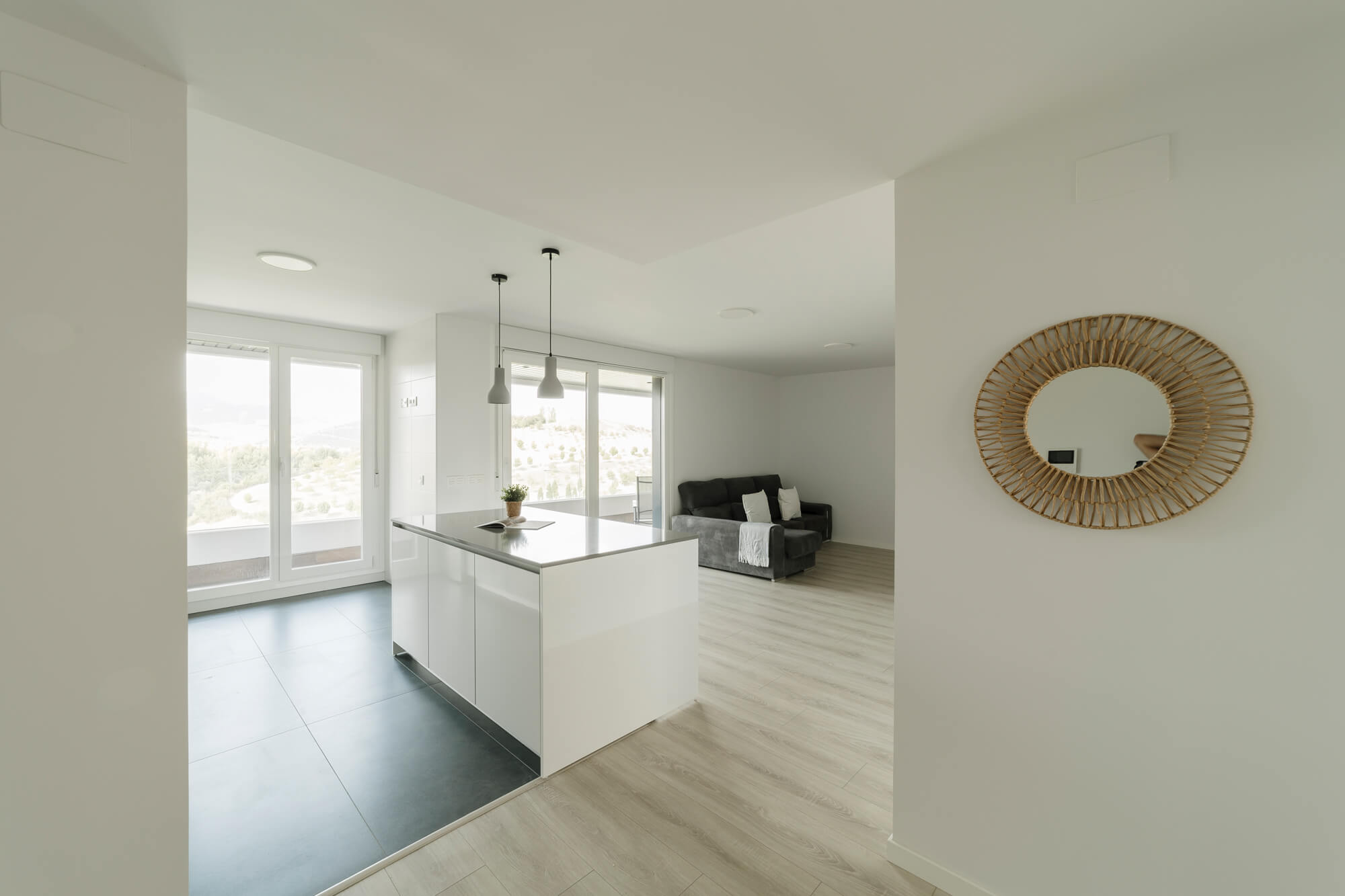 Situada en la séptima planta del edificio, cuenta con una gran cocina con zona de isla y salón con salida a una amplia terraza con unas inmejorables vistas. Además, dispone de una habitación principal con baño incluido en ella, dos habitaciones y un segundo baño equipado.