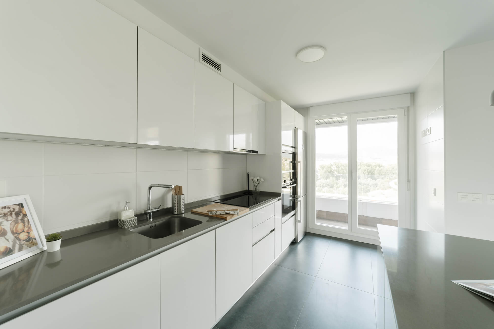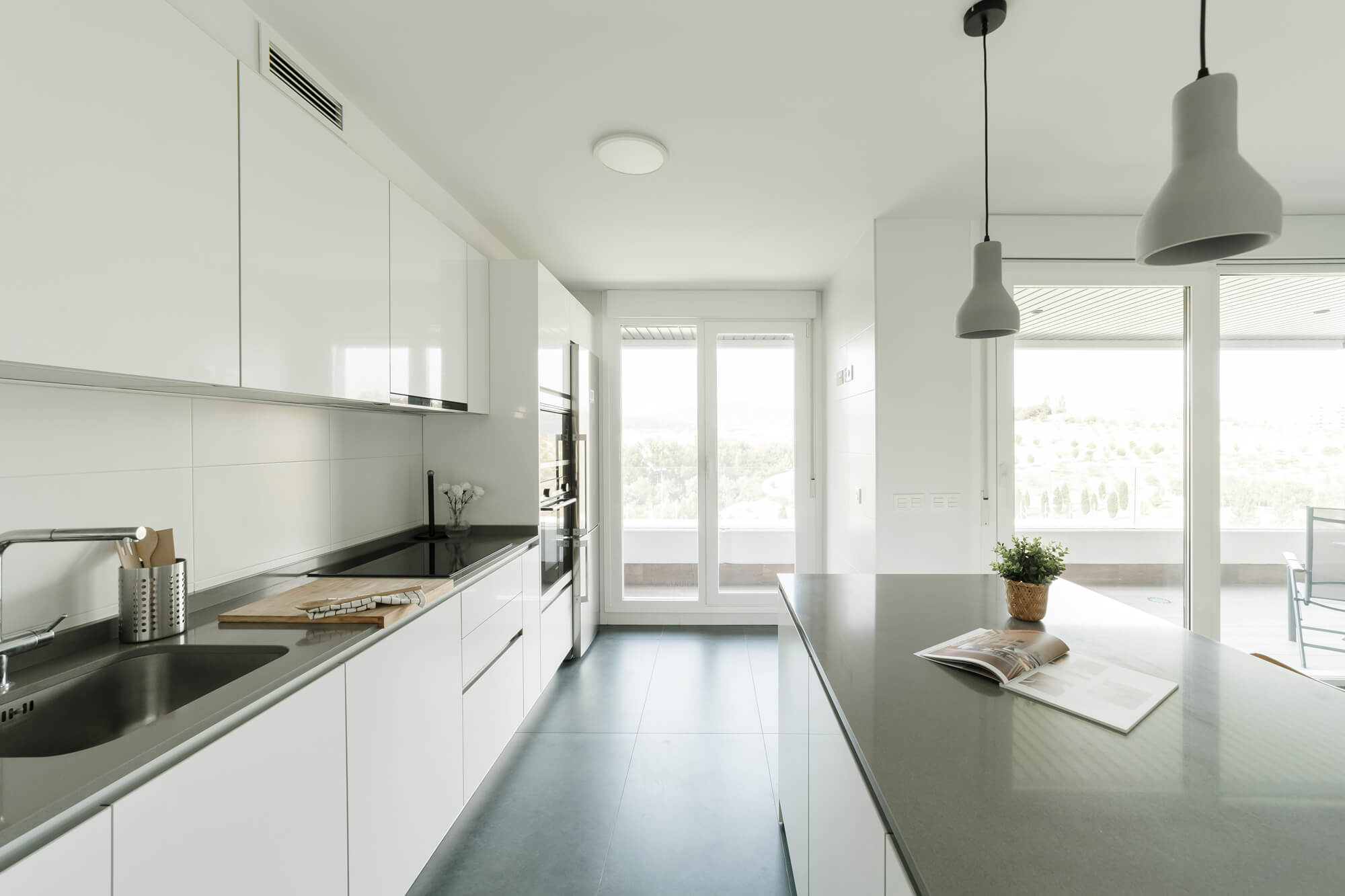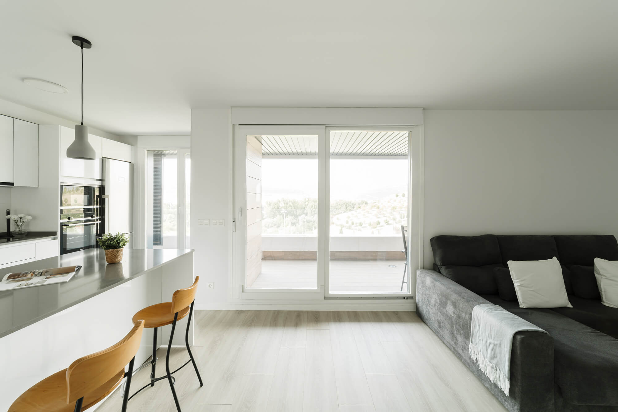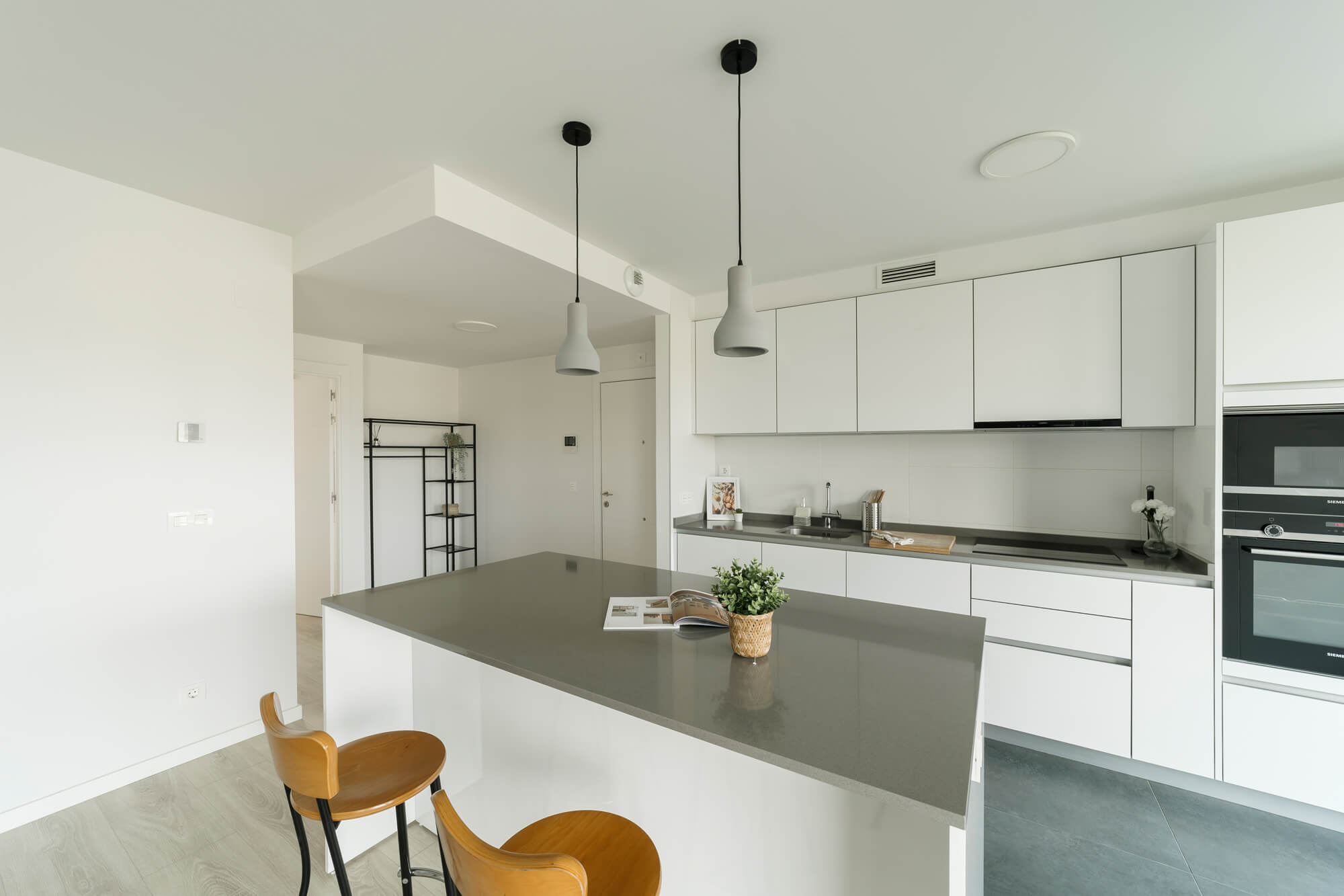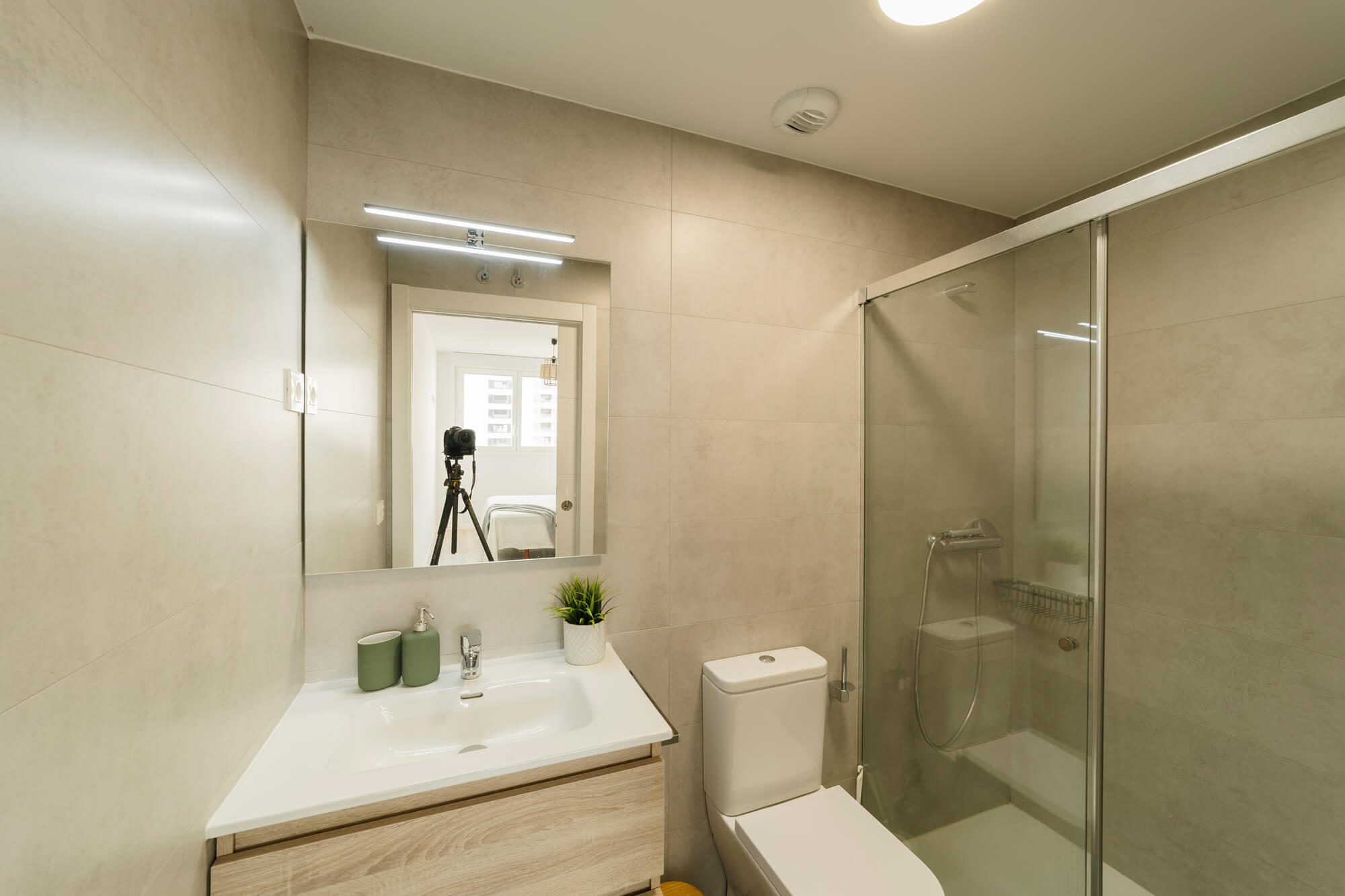 Situada en la séptima planta del edificio, cuenta con una gran cocina con zona de isla y salón con salida a una amplia terraza con unas inmejorables vistas. Además, dispone de una habitación principal con baño incluido en ella, dos habitaciones y un segundo baño equipado.