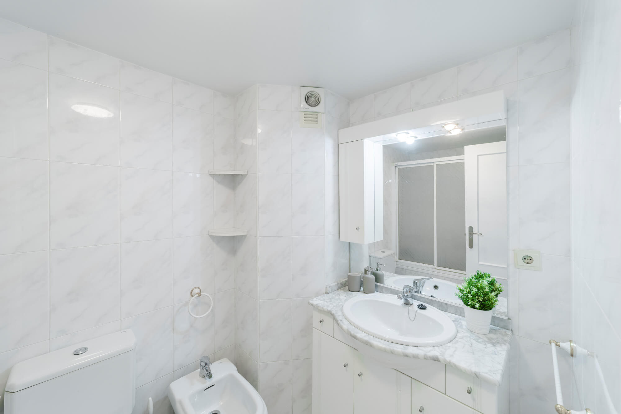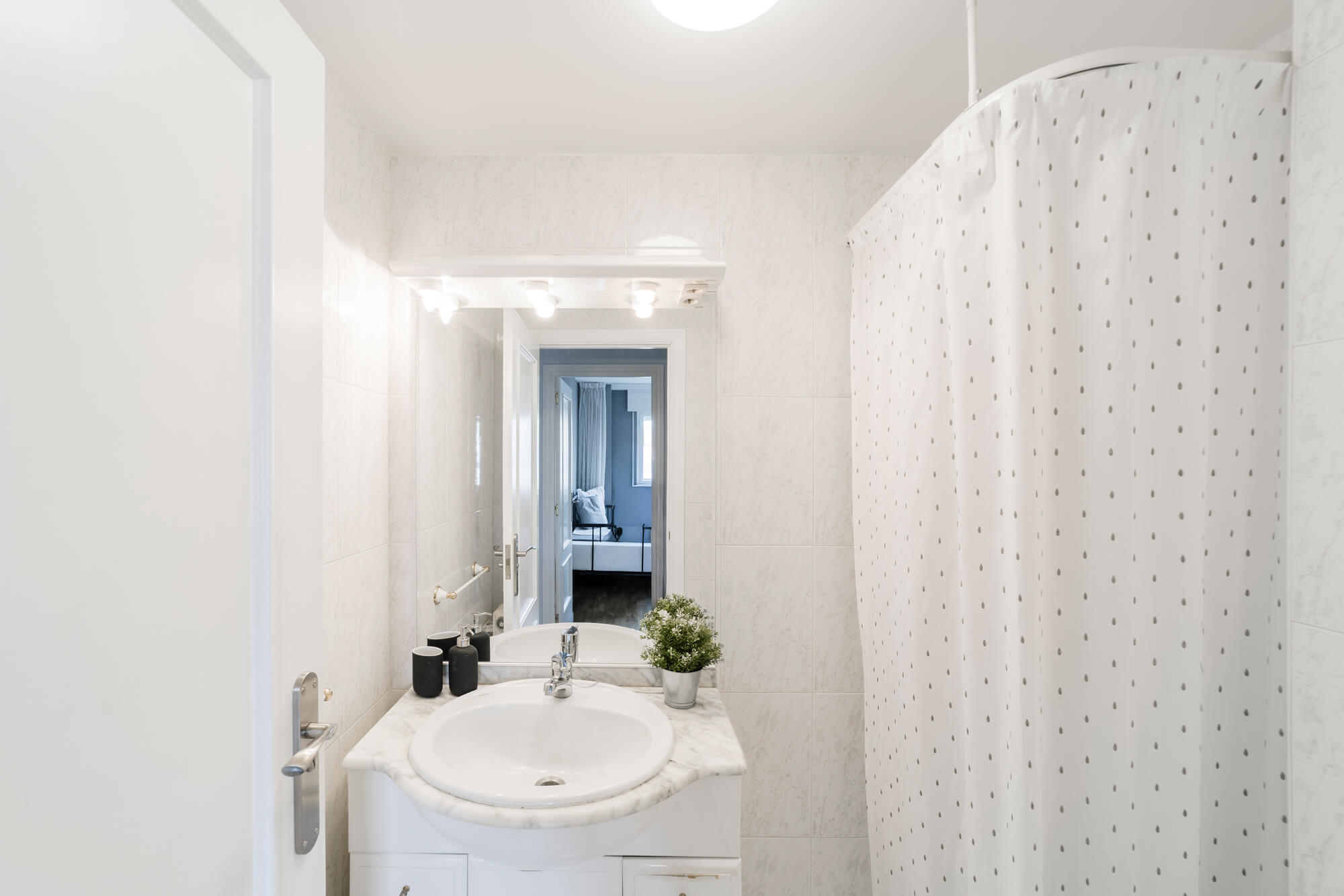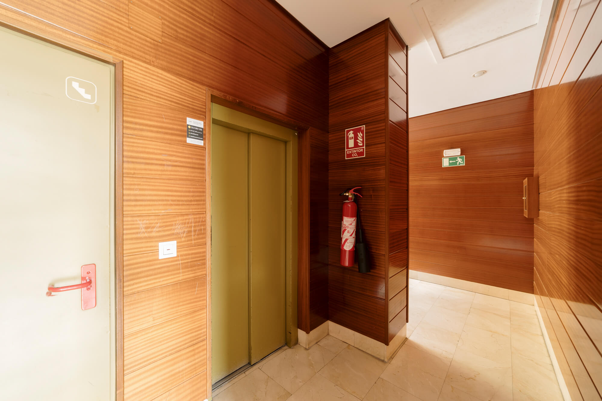 La vivienda consta de un hall de entrada, un salón amueblado, un dormitorio principal con armario empotrado, dos baños interiores completos, dos dormitorios y una cocina recién reformada. El edificio dispone de ascensor y el sistema de calefacción y agua caliente es mediante caldera central con contadores individuales, por lo que el inquilino paga en función del consumo.