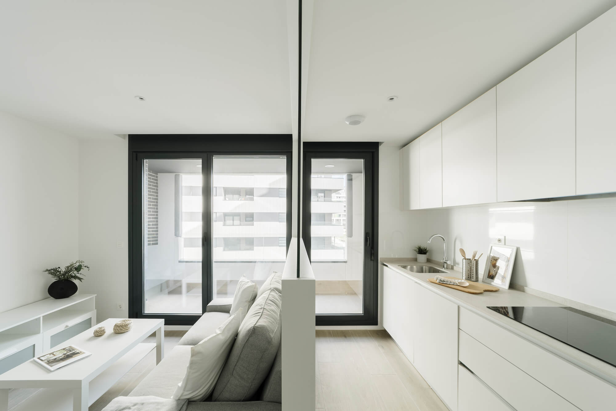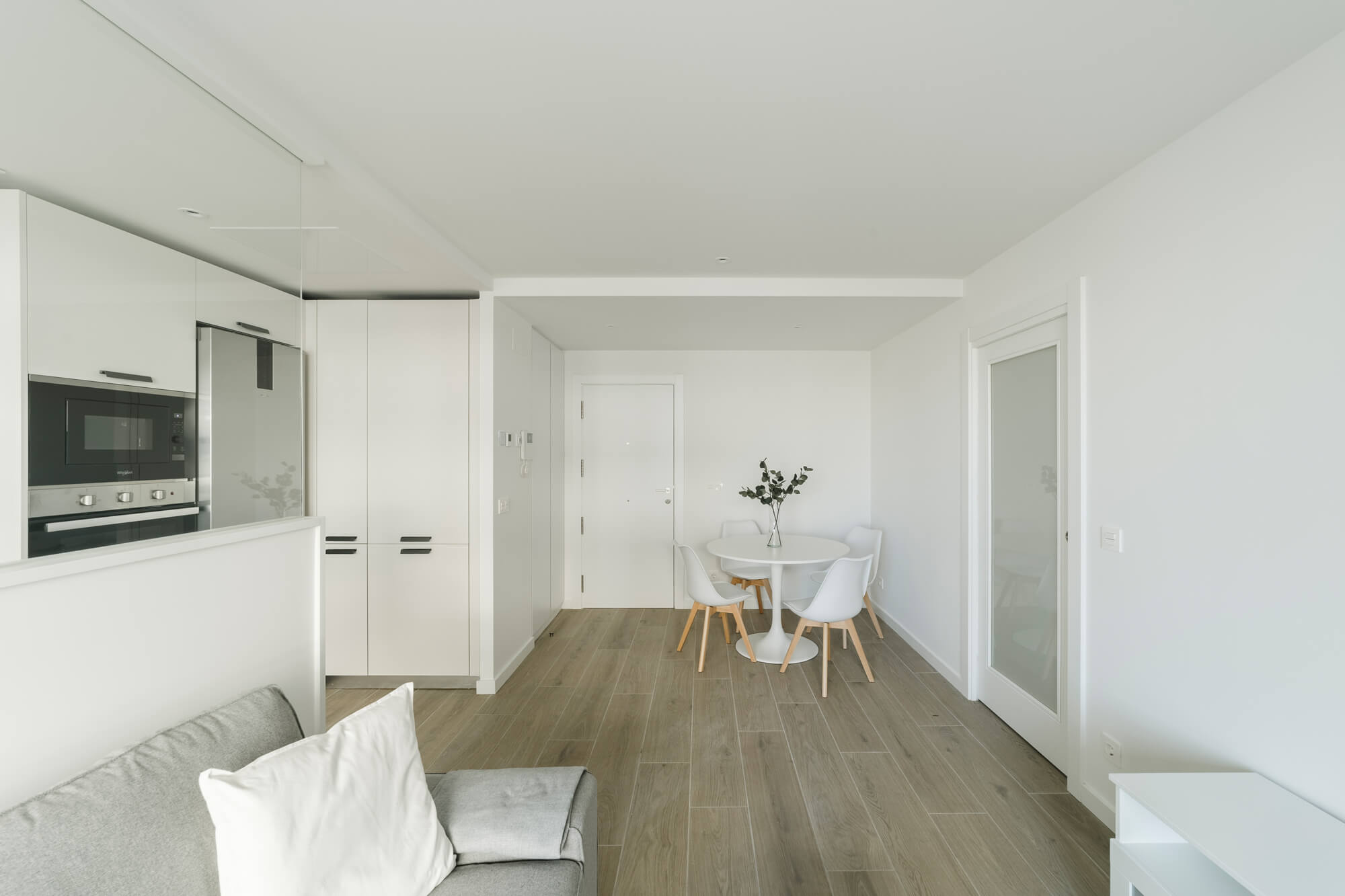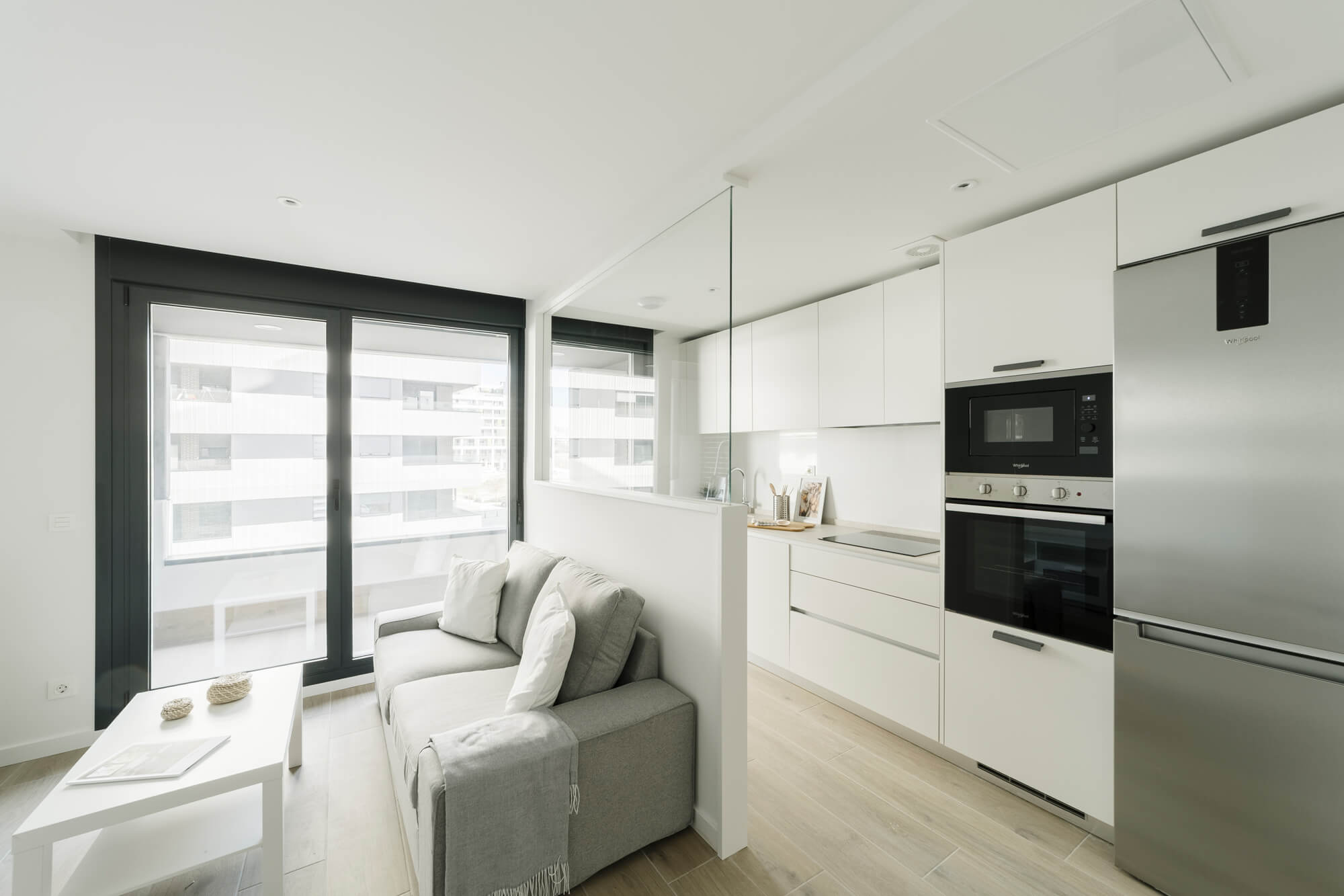 Ideal para una pareja o persona sola. La vivienda es de estilo “open-concept” con un luminoso salón-cocina y una acogedora terraza, se sitúa en la segunda planta del edificio y se distribuye en torno a una cómoda cocina conectada al salón, un gran dormitorio principal con zona de vestidor y un baño en suite, otro dormitorio con armario y un amplio baño de invitados.