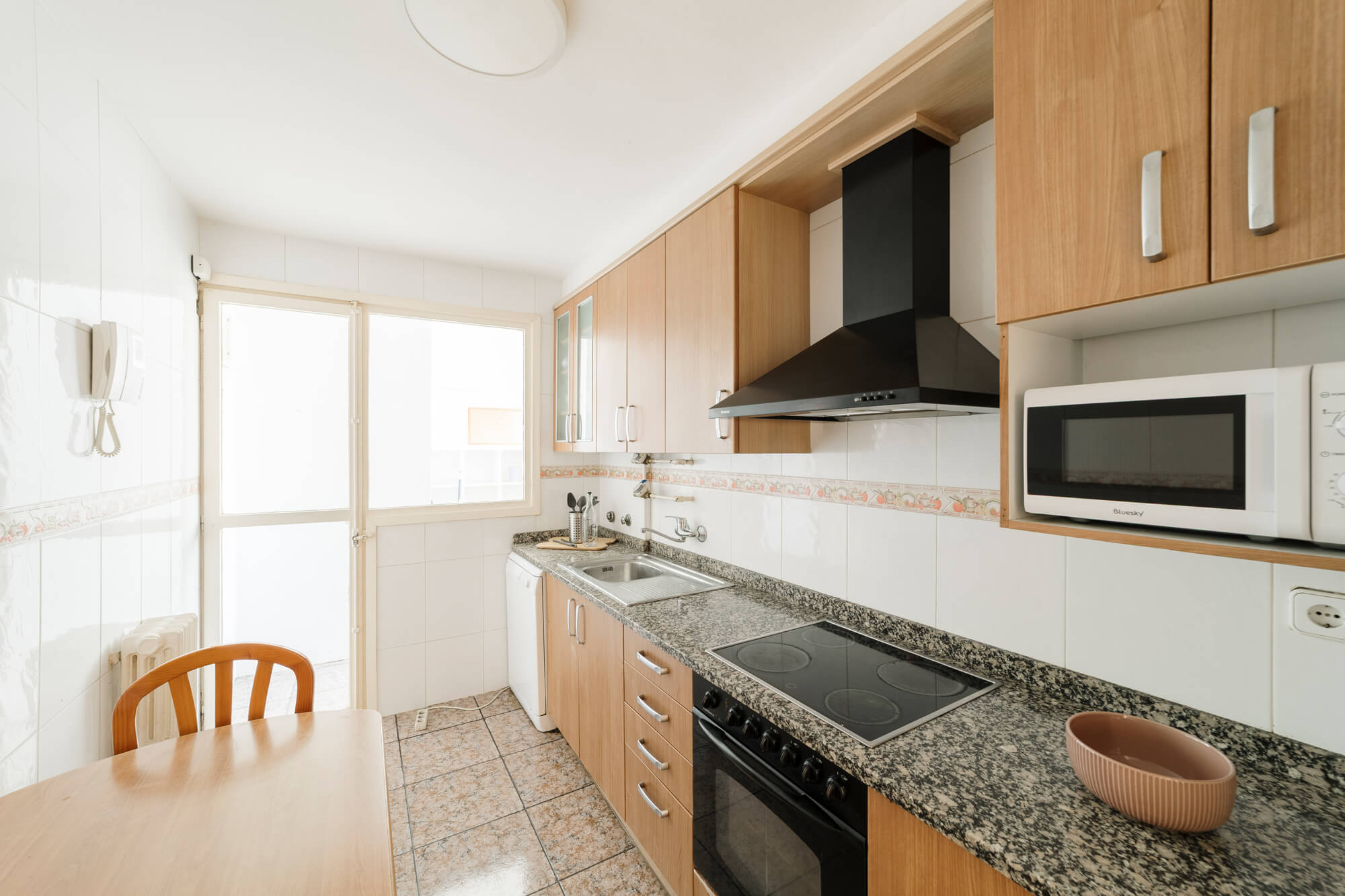 Situado en una primera planta, el piso se distribuye en torno a un amplio salón con zona de comedor, una equipada cocina con electrodomésticos, un dormitorio principal y tres habitaciones amplias con armarios y mucho espacio para almacenaje y dos baños completos, uno de ellos en la habitación principal.