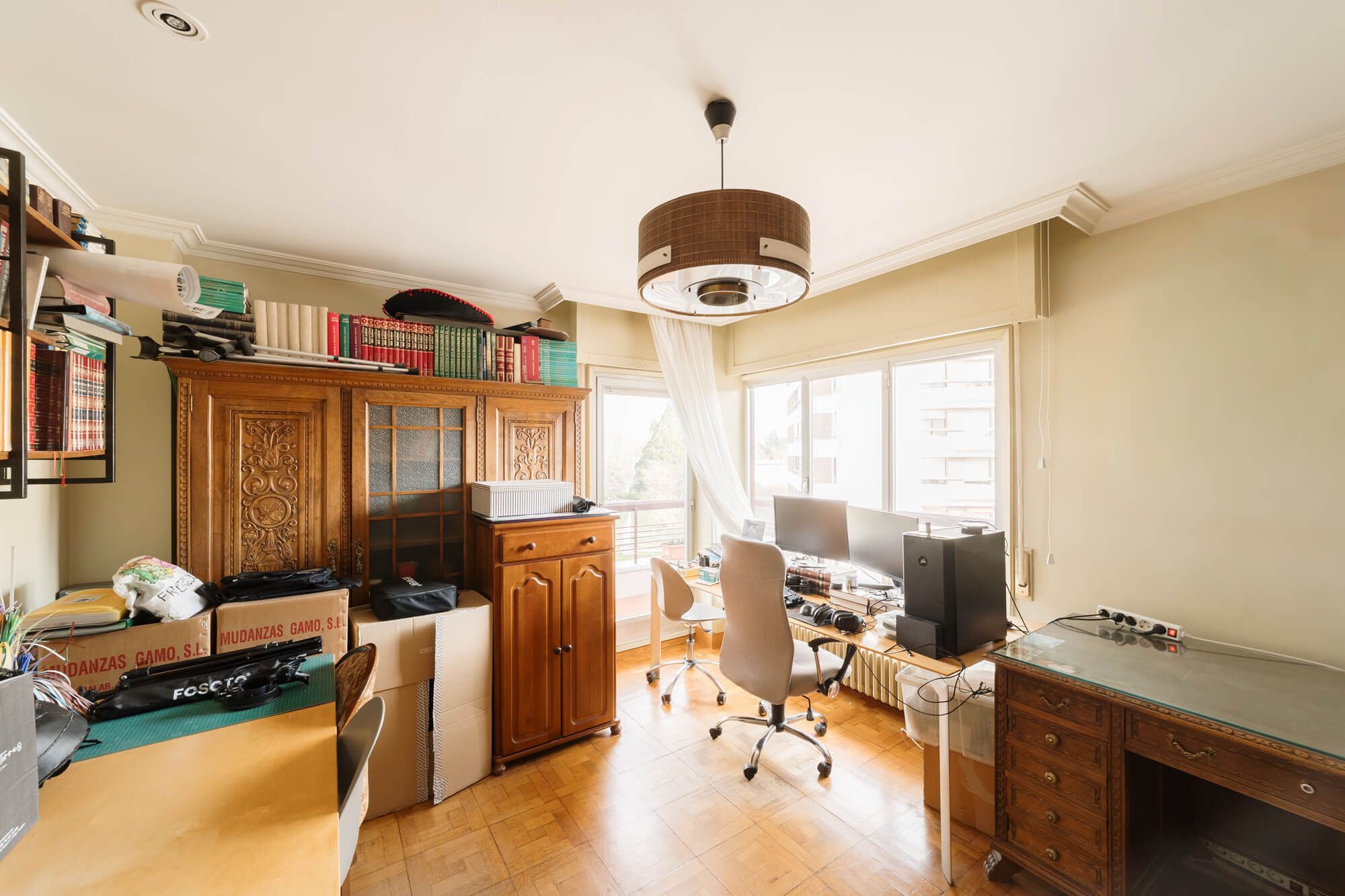La vivienda, situada en la cuarta planta, tiene una superficie útil de 125m² por lo que podrás adaptarla sin problema a tus necesidades y las de tu familia. Se distribuye en torno a un bonito vestíbulo de entrada, un gran salón-comedor con salida a una terraza perimetral, cuatro amplios dormitorios y dos baños, así como una amplia cocina con espacio diferenciado para comer y salida a un balcón-tendedero. Además cuenta con una plaza de garaje y un cuarto para guardar bicis en el portal. El sistema de producción de agua caliente y calefacción es mediante caldera central de gas con contadores individuales.